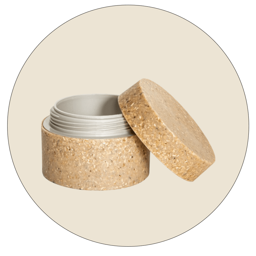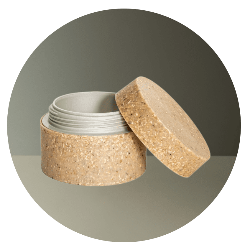 | ZZ-Sulapac-tekst-0028 | The outer layer of the jar is made of bio-based Sulapac Universal material containing wood chips from industrial side streams and biodegradable biopolymers. The insert is made of Sulapac Barrier material providing an excellent barrier against water evaporation. |