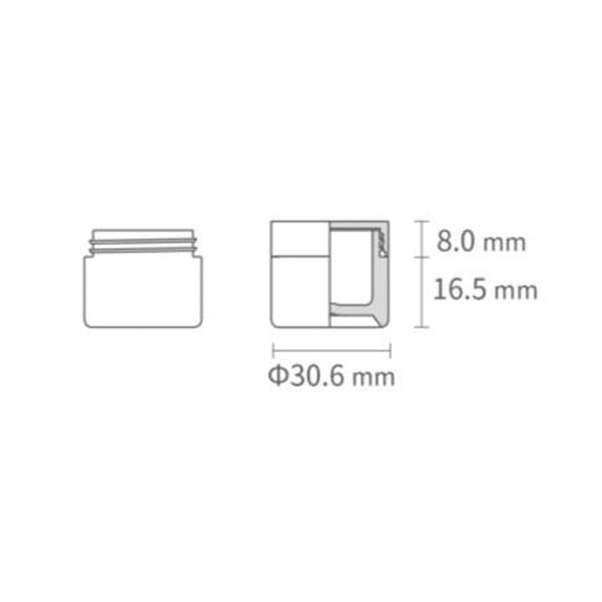 7 ml Nissha ecosense. Round-shaped premium sustainable cosmetic supplement jar. Made of patented two-layer structured bio-based Sulapac Universal (SUL-U) with Nissha neck finish. Collection Nissha ecosense is a high quality recyclable and compostable packaging solution for oil-based cosmetic applications. Outer layer has small hints of wood in its surface. 7 ml Nissha ecosense jars are Industrial Compost certified (EN13432) and Food Contact Safety approved (EU) No 10/2011. Dimensions: (D x H) 31 mm x 25 mm and a weight of 8 gram.